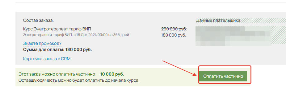 Для того, чтобы внести предоплату, заполните эту форму и в следующем окне выберите «Оплатить частично»